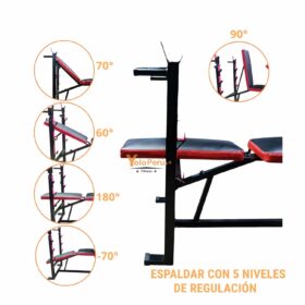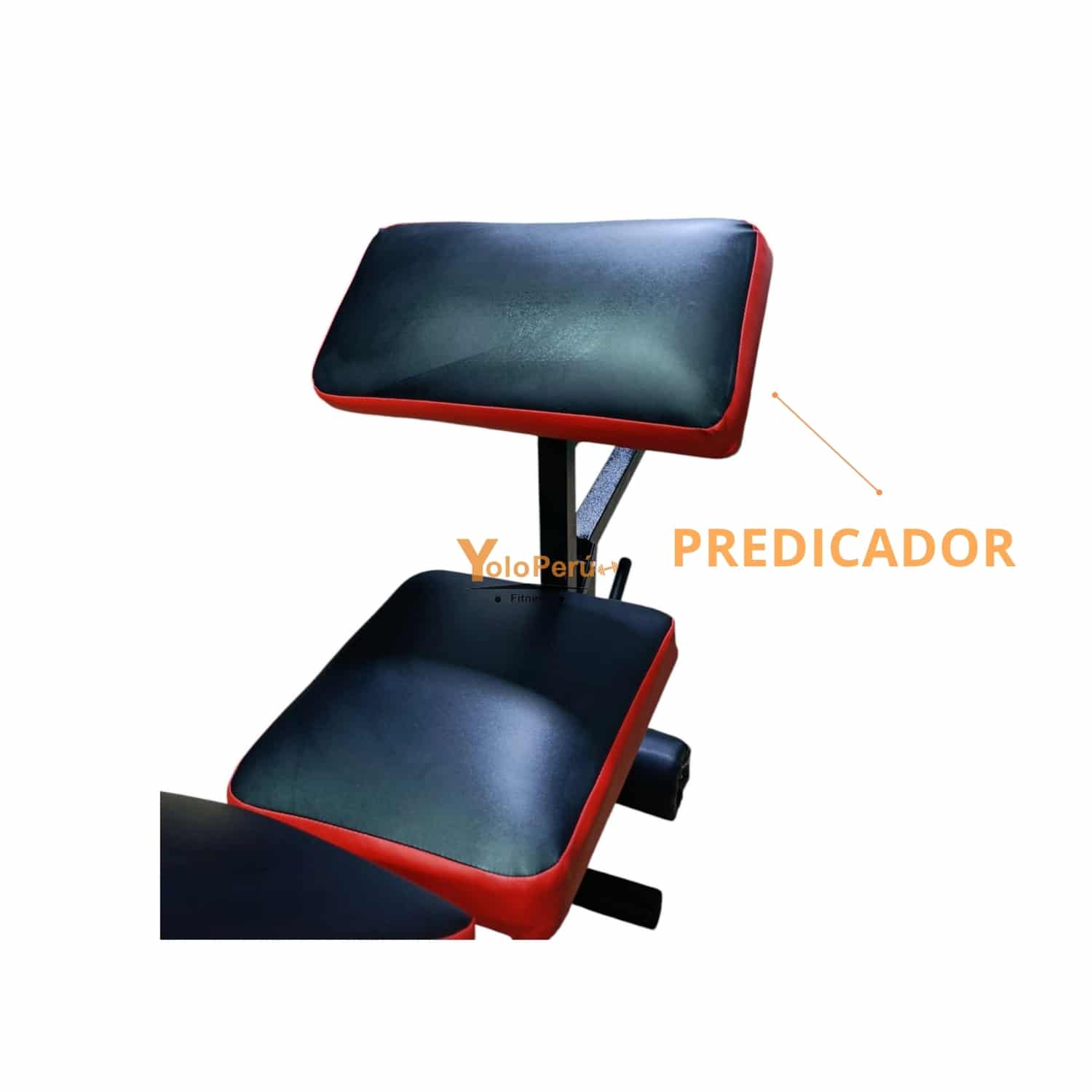 - Predicador ajustable: Diseñado para trabajar bíceps de forma aislada, brindando control y precisión en cada repetición.
