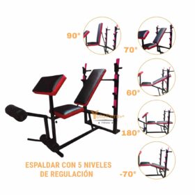 • Se adapta a diferentes ejercicios como press de banca, press inclinado y otros movimientos de fuerza en distintos niveles. - Predicador ajustable:
