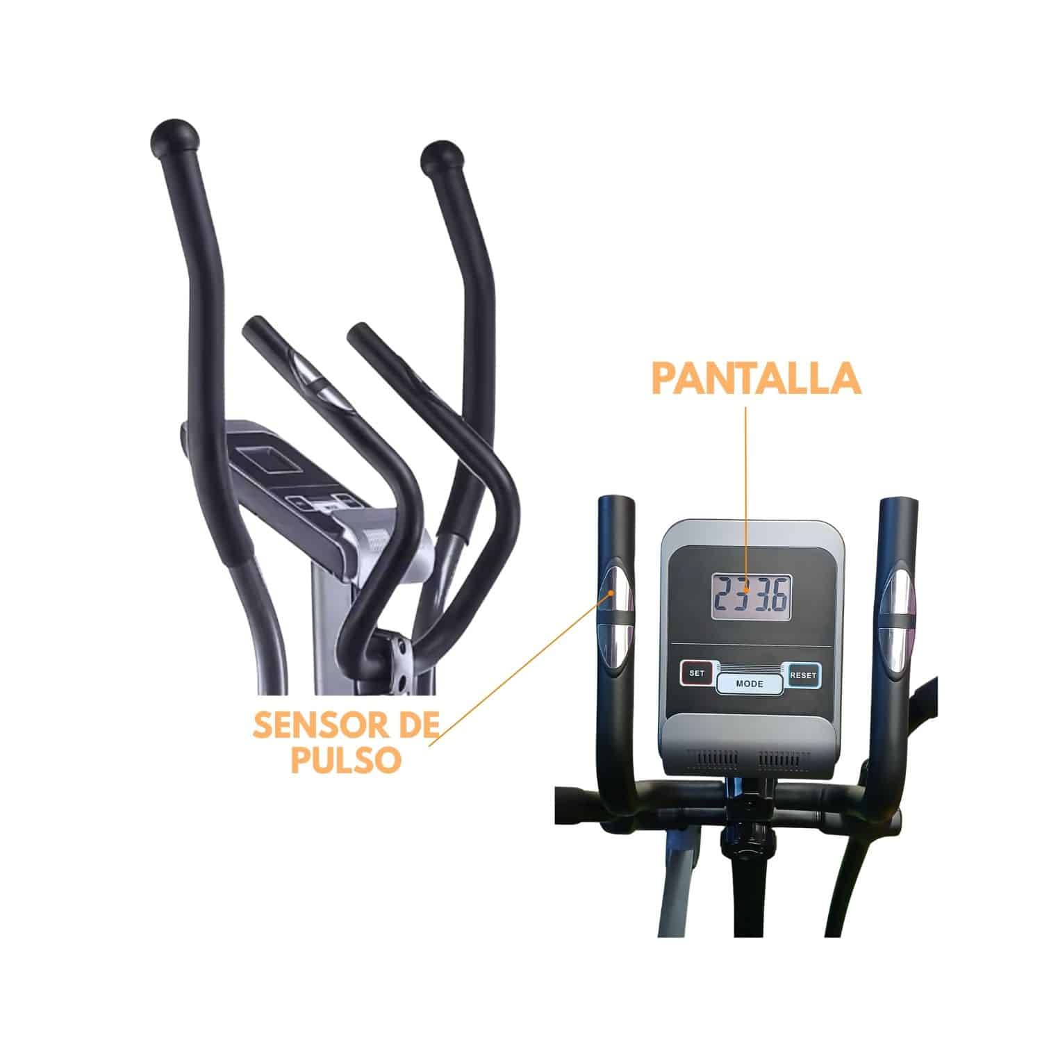- Pantalla LCD multifunción: Muestra velocidad, distancia, calorías, tiempo, pedaleo y frecuencia cardíaca