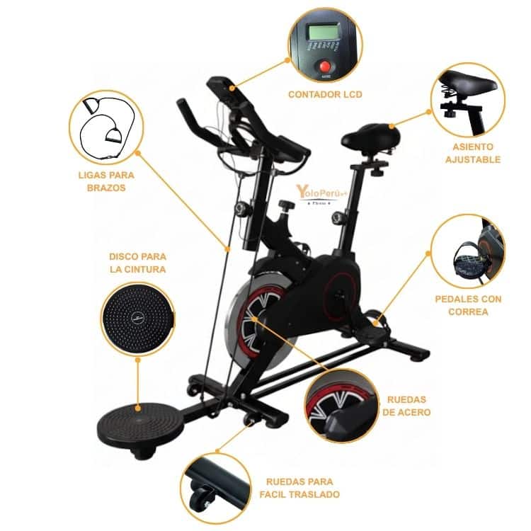 Transforma tu rutina de ejercicio en casa con esta bicicleta de spinning multifuncional que te ofrece un entrenamiento completo de cuerpo. ¡Todo lo que necesitas para tonificar y quemar calorías sin salir de casa!
