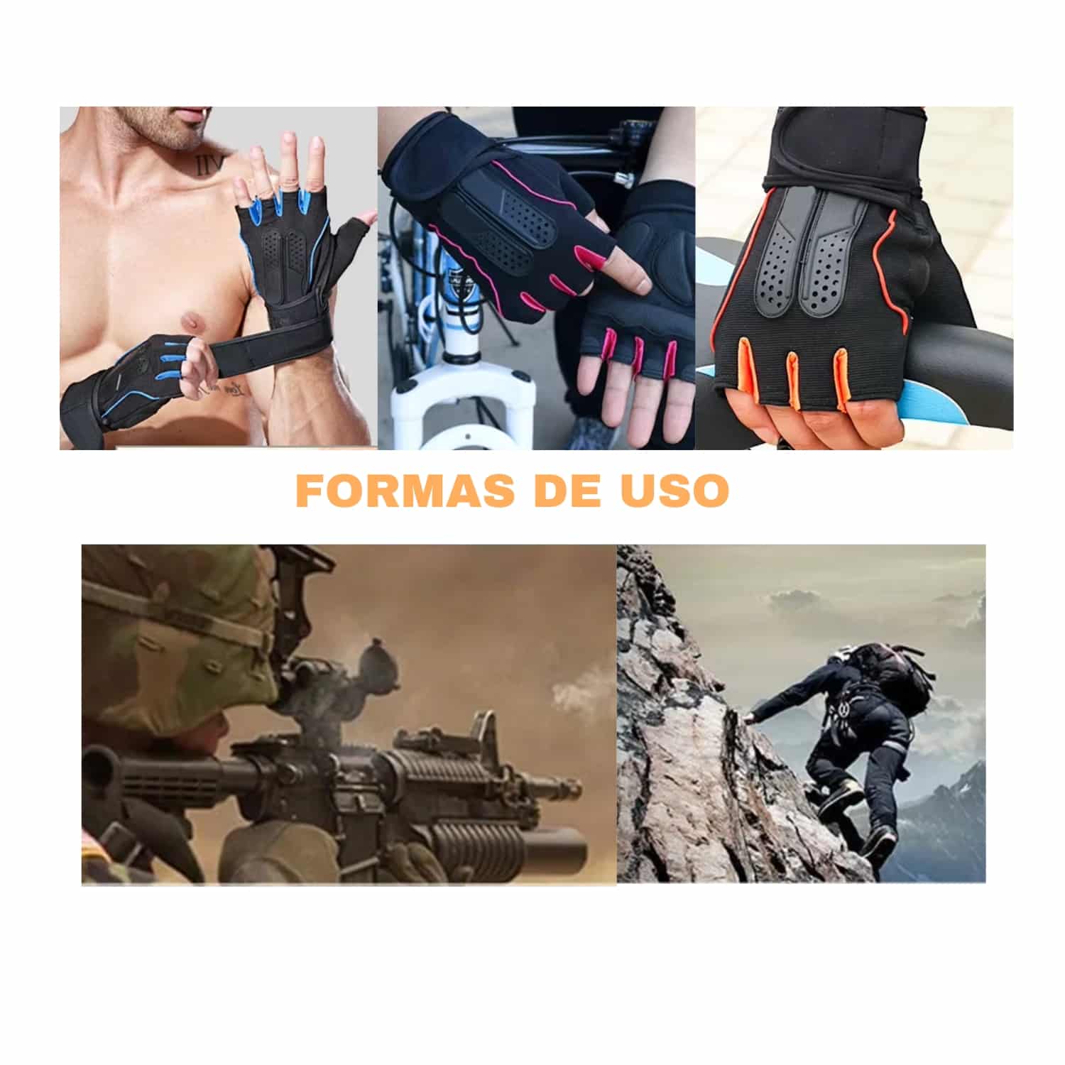 - Material: Fabricados con una combinación de cuero sintético resistente a la abrasión en la palma, spandex ventilado en el dorso y tela resistente al sudor.