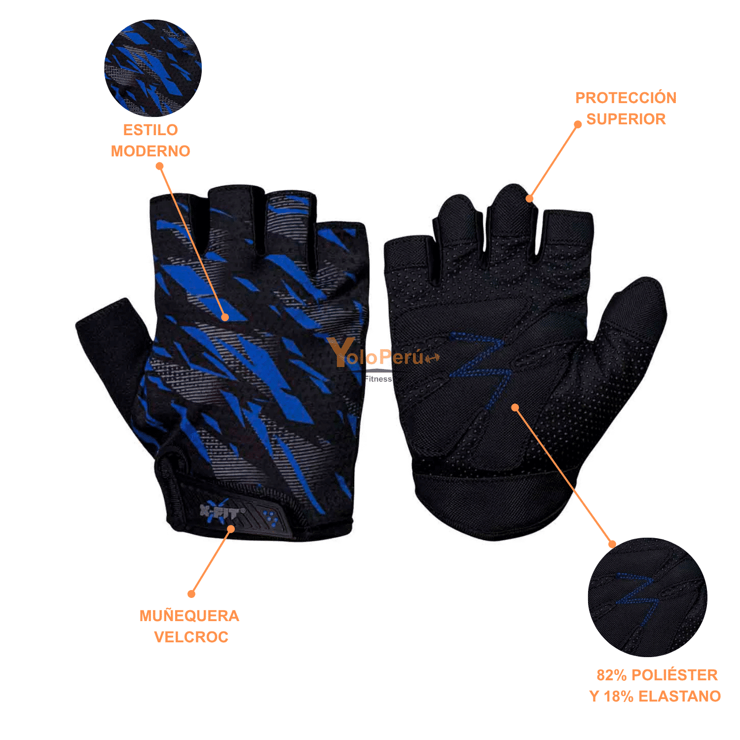 Guantes deportivos XFit ideales para entrenamiento con pesas, diseñados con materiales transpirables, agarre antideslizante y acolchado en la palma para mayor comodidad y protección. Perfectos para cross training, gimnasio y levantamiento de pesas.