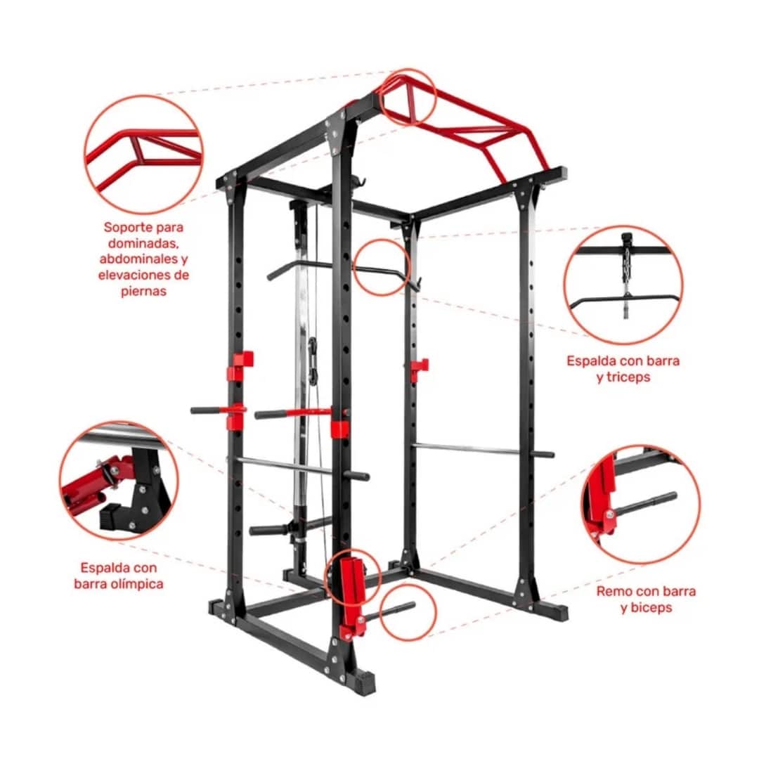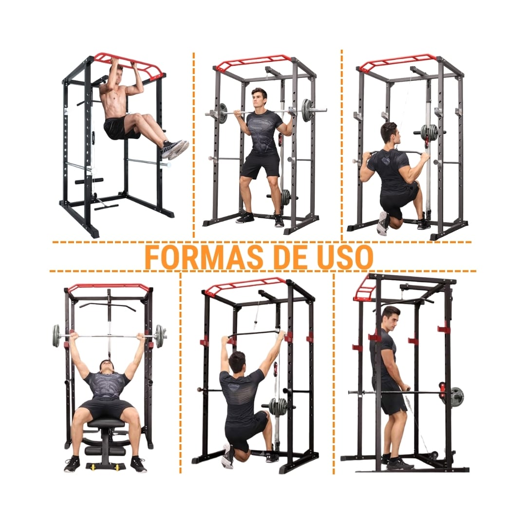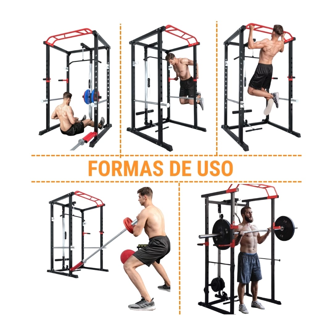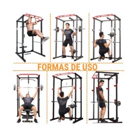- 4 barras de pesas largas con revestimiento de goma y ajustables en altura
