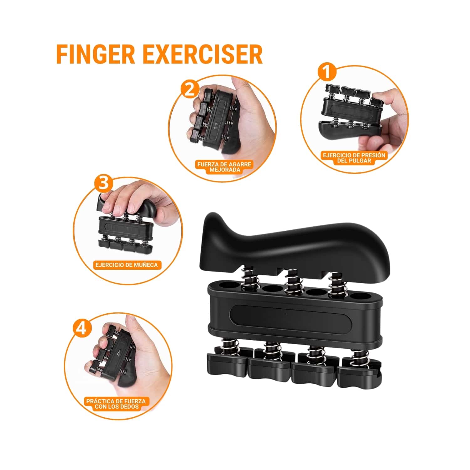 - Ejercitador de dedos: ABS (plástico de ingeniería resistente).