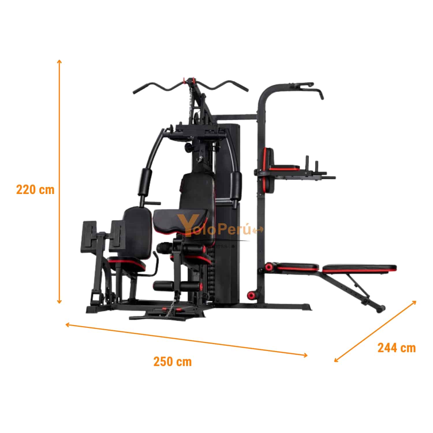 - Dimensiones del equipo ensamblado: 250 cm (Largo) 244 cm (Ancho) x 220 cm(Alto).