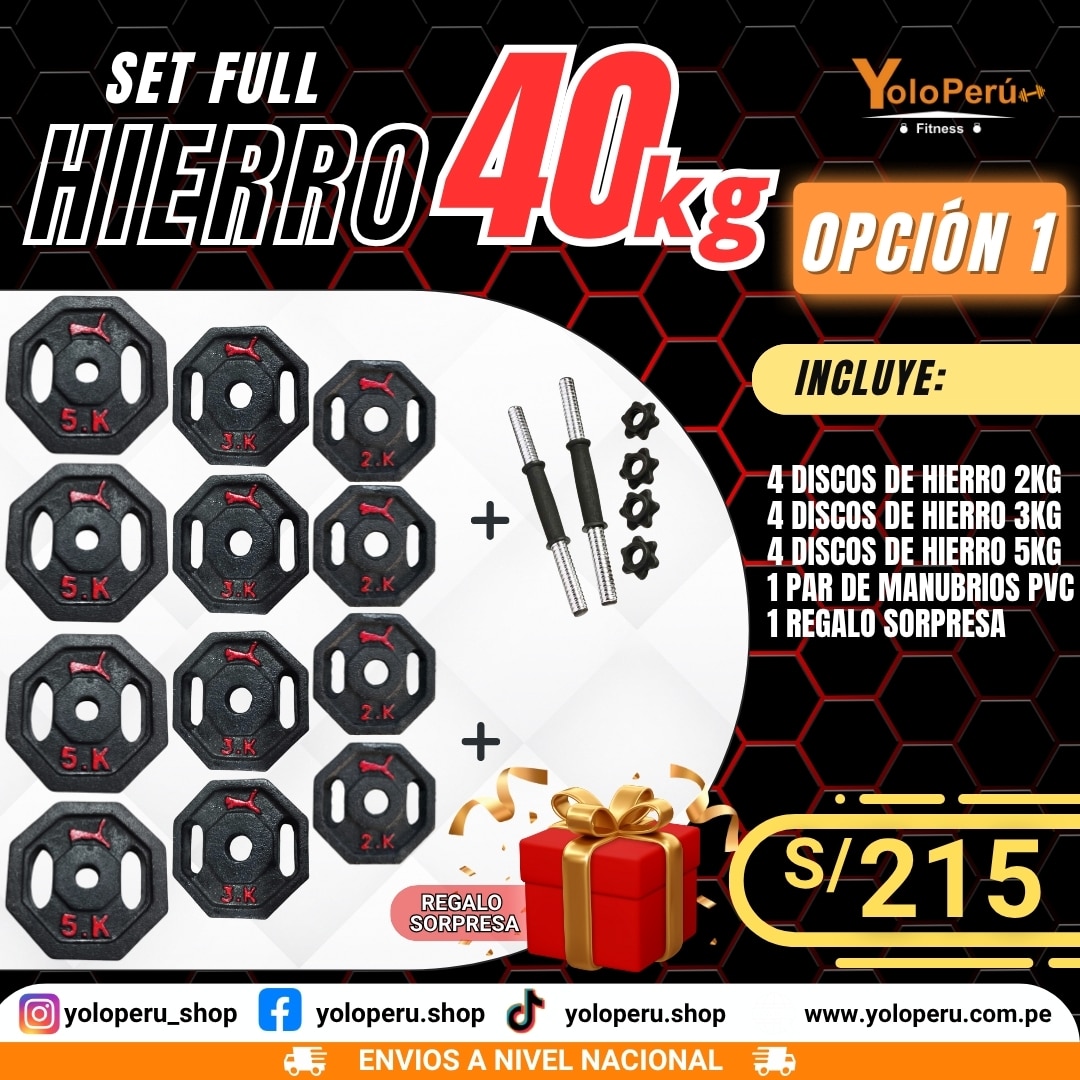 Llévate tu Set Full Hierro de 40 kg y entrena con máxima potencia y resistencia 💪🔥. Este set robusto y completo es perfecto para quienes buscan calidad, durabilidad y resultados reales en cada sesión.