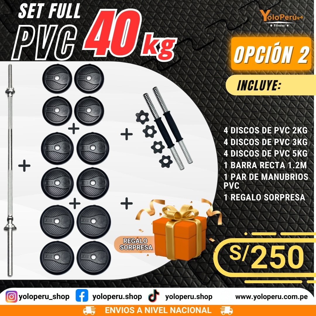 Llévate tu Set Full PVC de 40 Kg, diseñado para quienes buscan entrenamientos cómodos pero con mayor resistencia . Calidad, estilo y funcionalidad para que lleves tu rutina al siguiente nivel sin sacrificar comodidad.