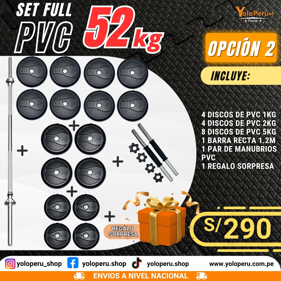 Llévate tu Set Full PVC de 52 Kg, un set completo y versátil para entrenamientos intensos y efectivos 💪🔥.