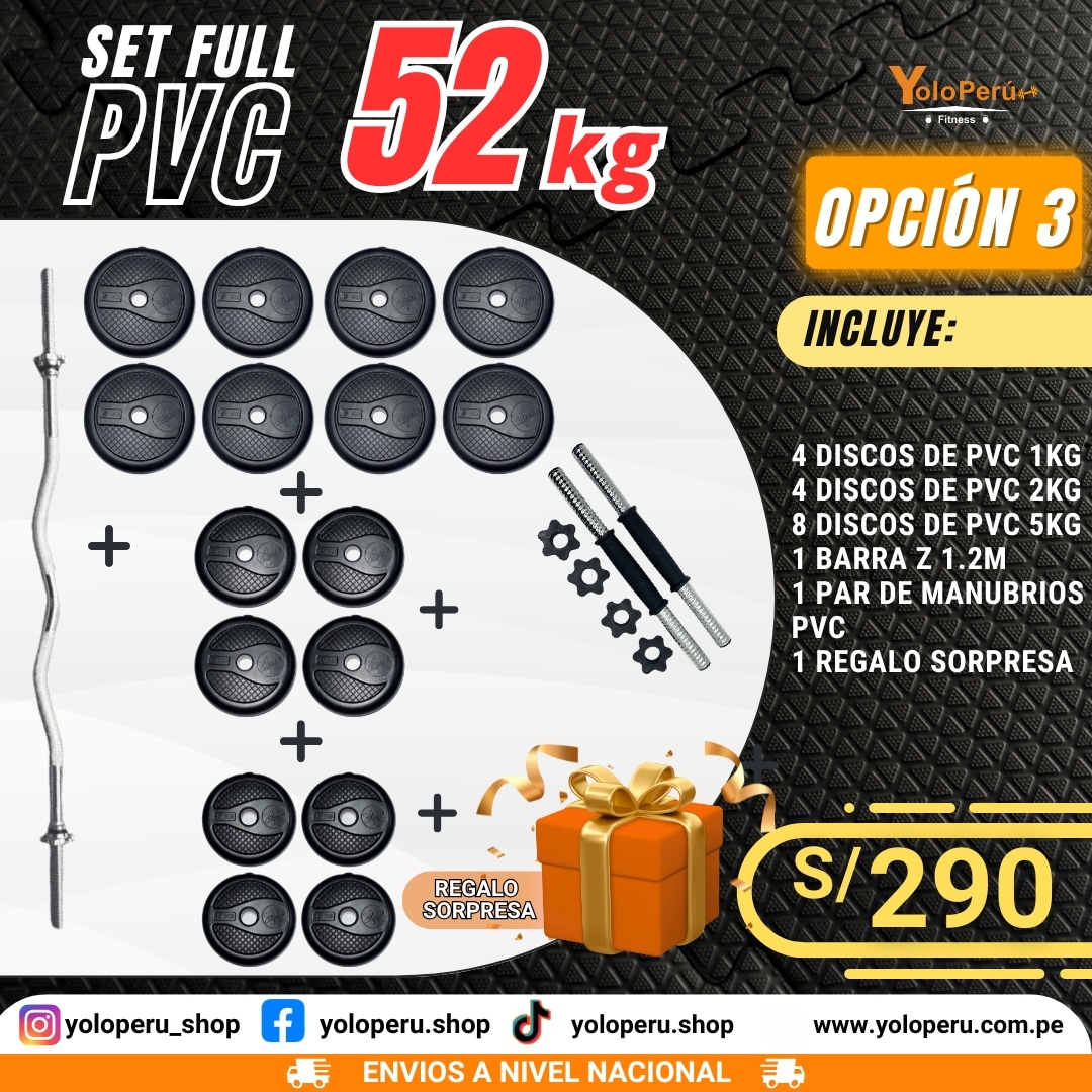 Llévate tu Set Full PVC de 52 Kg, un set completo y versátil para entrenamientos intensos y efectivos 💪🔥.