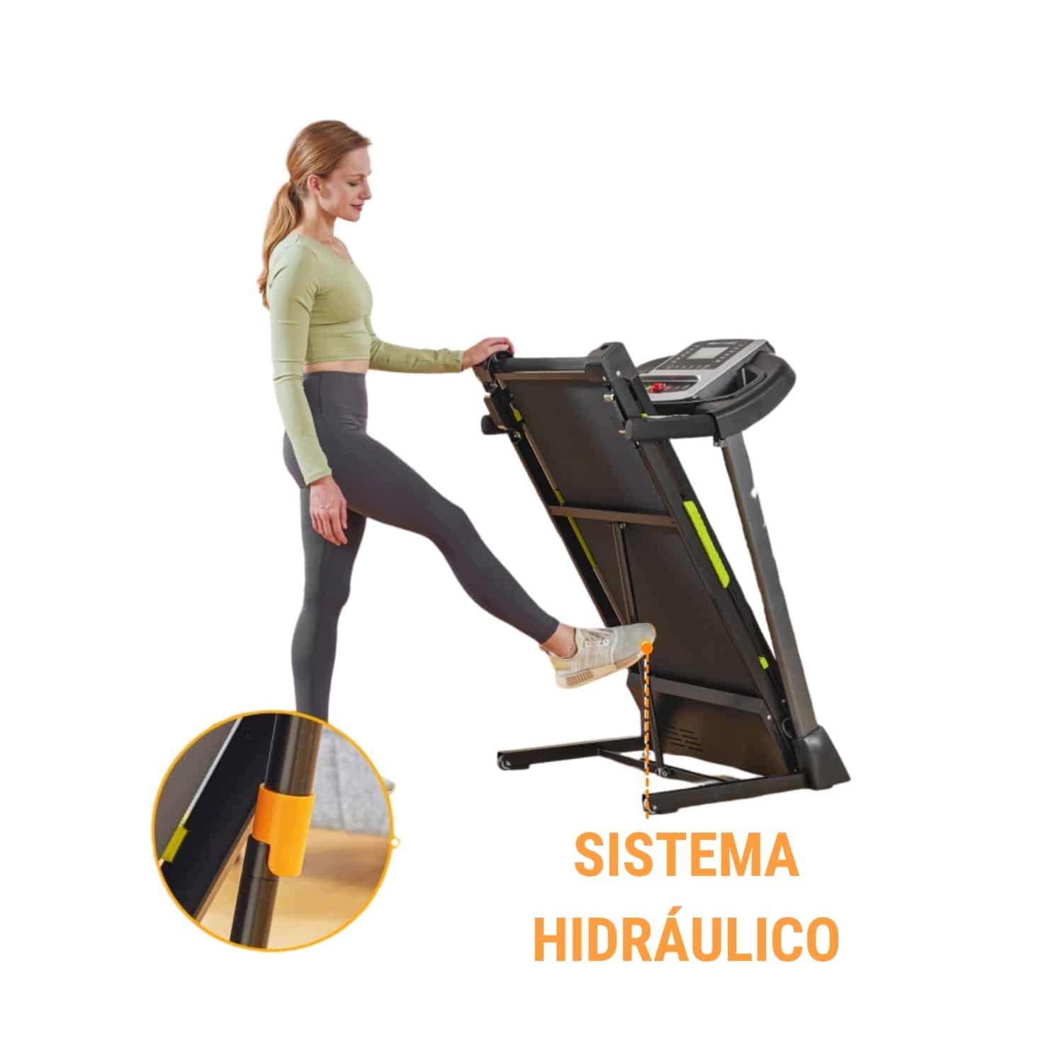 - Diseño plegable con pistón hidráulico, ideal para ahorrar espacio